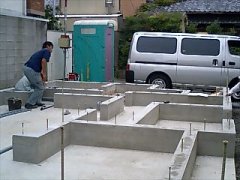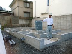本日、石井土木さんに、基礎立上りのレベルチェックと、通り芯の墨出しを行ってもらい、正式に基礎工事が完了しました。(写真モデルは、石井さん本人(笑))