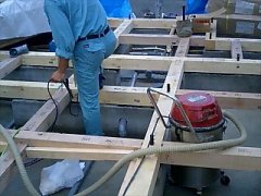 この作業は、基礎の天端に、土台を据える為の正確な位置を描いていく作業です。図面の寸法通り作った基礎だから、基礎に合わせれば良いようなものですが、実際の現場には必ず誤差が発生します。その誤差を吸収するため、どの部分を基準にして寸法を追い出していけばベストかを判断しながら、作業が行われます。