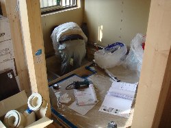 ダクトまわり、サッシまわりも防水テープで完璧にシャットアウトです!!